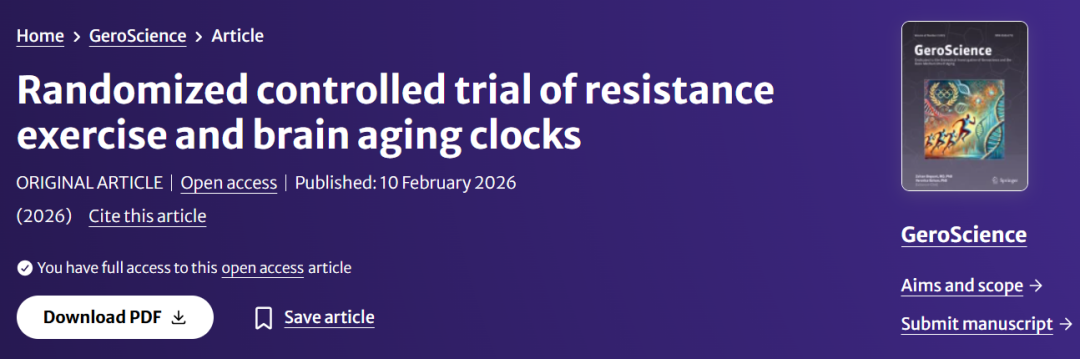 2026年2月,国际期刊《老年科学》(GeroScience)发表的一项研究显示,“抗阻运动”真的是对大脑有用的“逆龄运动”!实验发现,坚持抗阻运动一年后,大脑“年龄”可以年轻约2.3岁。那些没有进行抗阻力量锻炼的人,则没有这种“逆龄”效果。